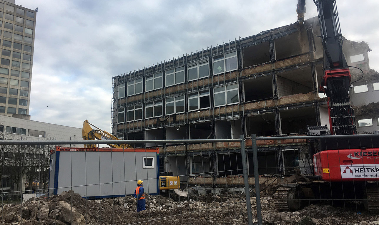 A major building project in Dortmund turns into reality: the Spar- und Bauverein (savings and building association) builds a three-part ensemble of buildings in a central location on Königswall – designed by KZA. On the site opposite the Harenberg City Centre, demolition work on the existing buildings has begun.
