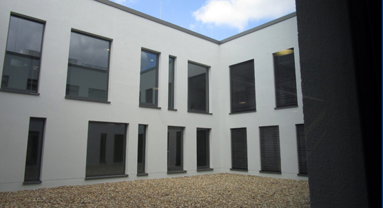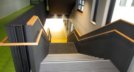 Noch sind die Flure des Neubaus leer, doch mit dem ersten Gong nach den Sommerferien wird sich die Situation schlagartig ändern. Dann bevölkern die ersten Kinder die Gesamtschule Hürth – und testen die Qualitäten des Gebäudes. Das KZA-Team hat die Ausführungsplanung für das rund 40 Millionen teure Bauvorhaben betreut. Nach knapp zweijähriger Bauzeit ist es nun bereit für den Einzug.