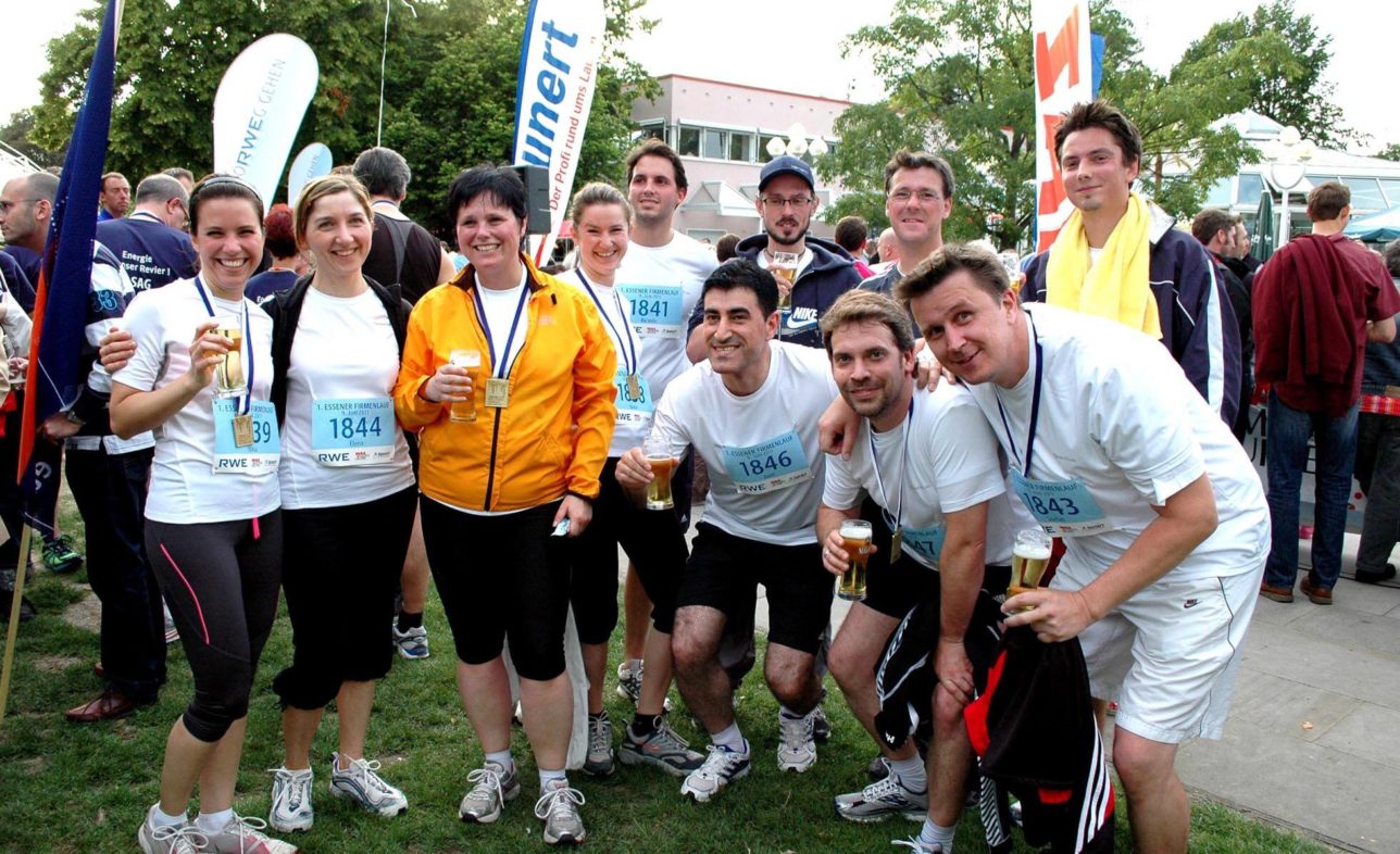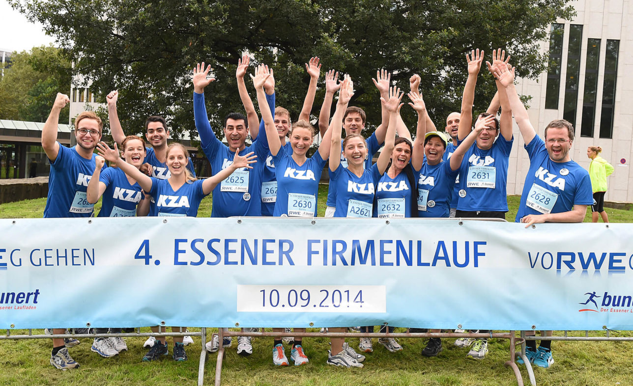Dann geht er los, der Essener Firmenlauf. Die Rüttenscheider Straße hinauf, an unserem Büro vorbei, Wende auf der Höhe vom Mitorganisator Laufsport Brunert, auf den Messeparkplatz an der Messehalle vorbei in die Gruga und hinein ins Ziel an der Tümmelwiese!