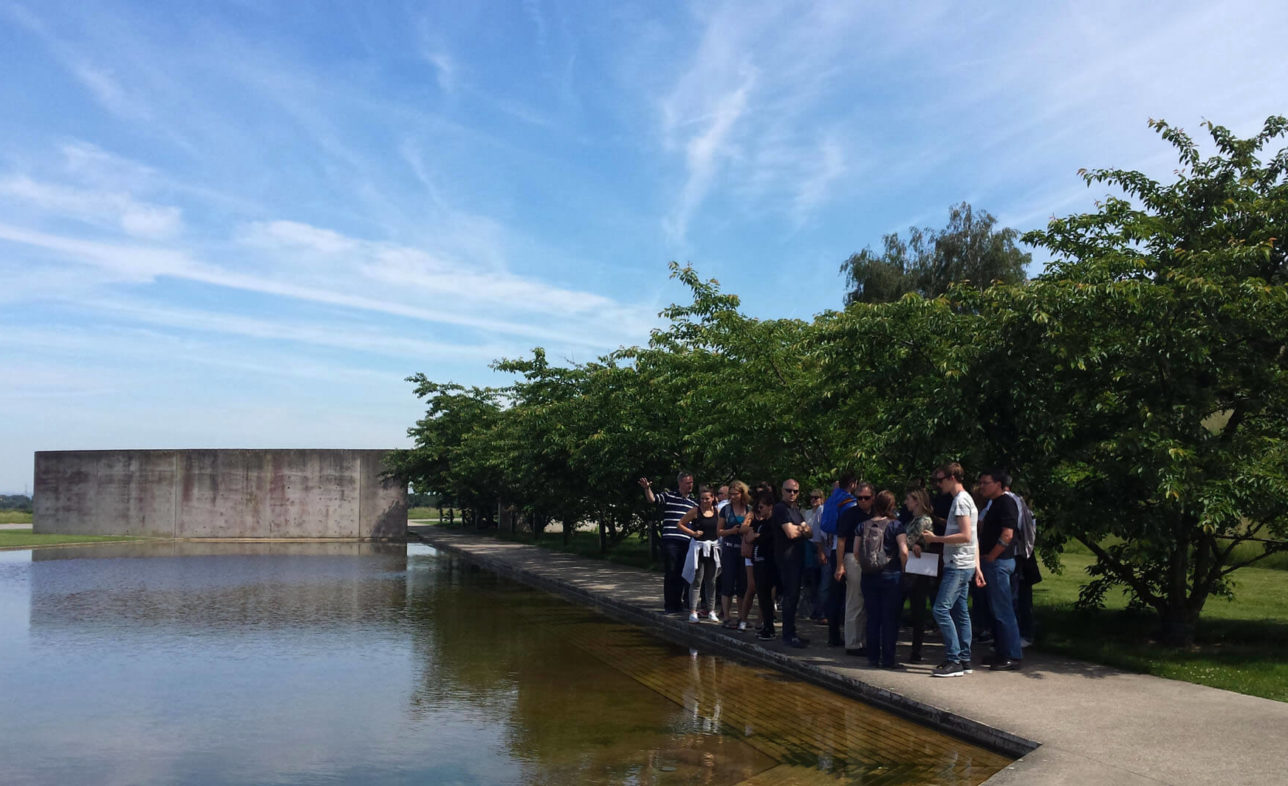 Die ständige Ausstellung des Museumsortes wird in einem Baukörper mit einer zweischaligen Hülle gezeigt. In einem Glasmantel steht ein kleinerer Betonbau. Die Sonderauststellungen finden in zwei zum großen Teil unter der Erde liegenden Trakten statt, die in einem Winkel von 45 Grad zum zweischaligen Baukörper angeordnet sind.
