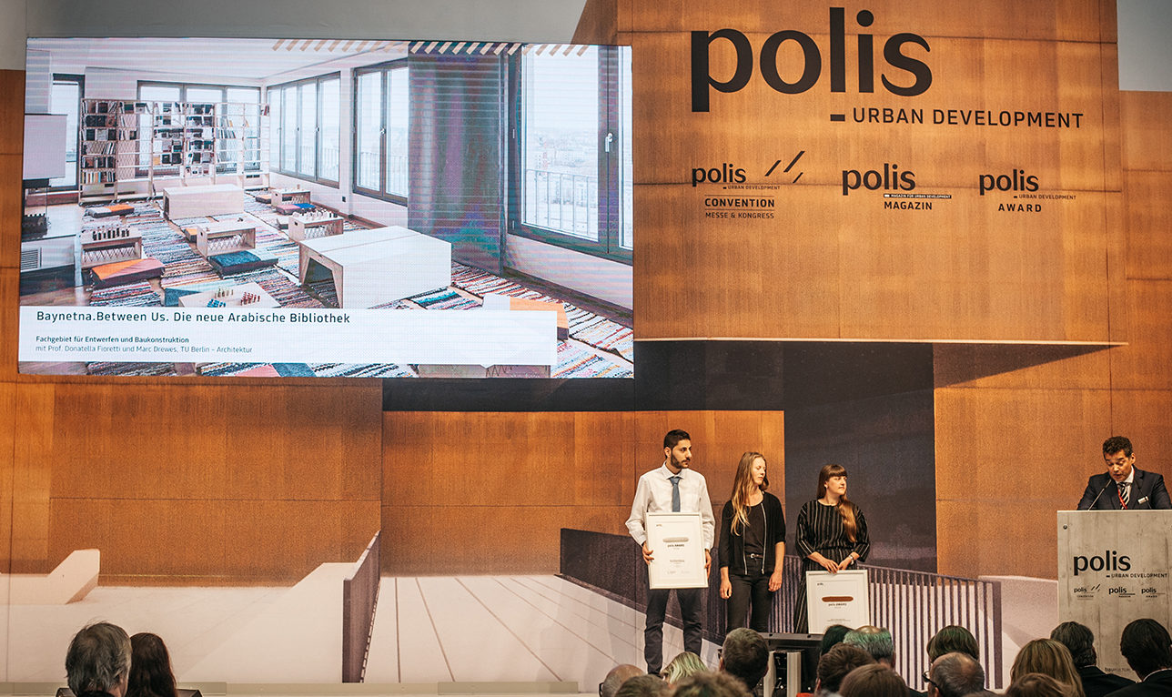 Das Projekt „Baynetna.Between Us. Die neue arabische Bibliothek“ ist beim polis Award Campus mit dem zweiten Preis ausgezeichnet worden. Hasan Moaita, der im Essener Büro KZA zum Bauzeichner ausgebildet wird, hat daran mitgearbeitet. Bei der polis Convention in Düsseldorf nahm er den Preis stellvertretend für alle Projektbeteiligten entgegen.