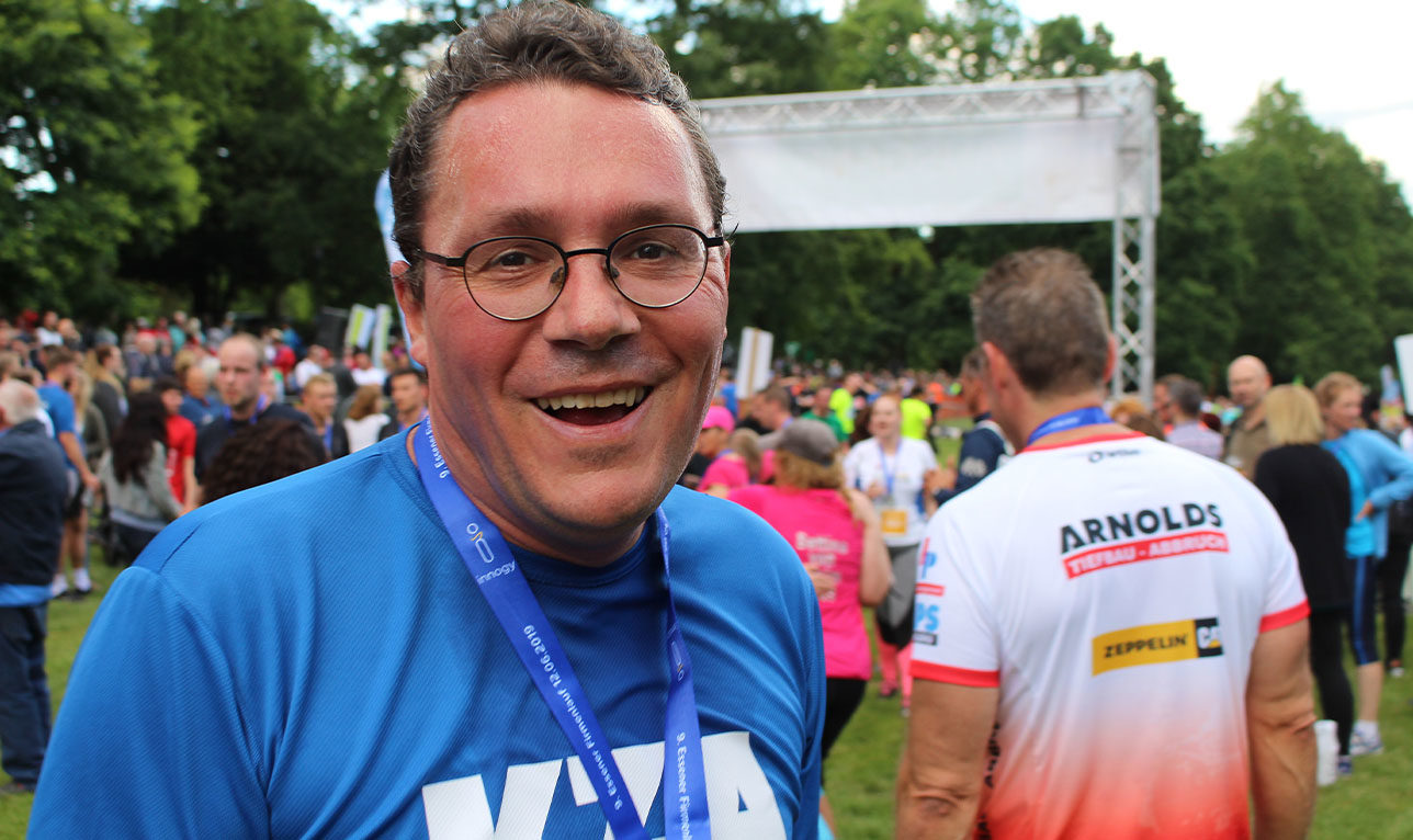 Tatsächlich trainiere ich regelmäßig. Alle zwei bis drei Tage laufe ich vier bis sechs Kilometer. Allerdings viel entspannter als hier beim Firmenlauf.