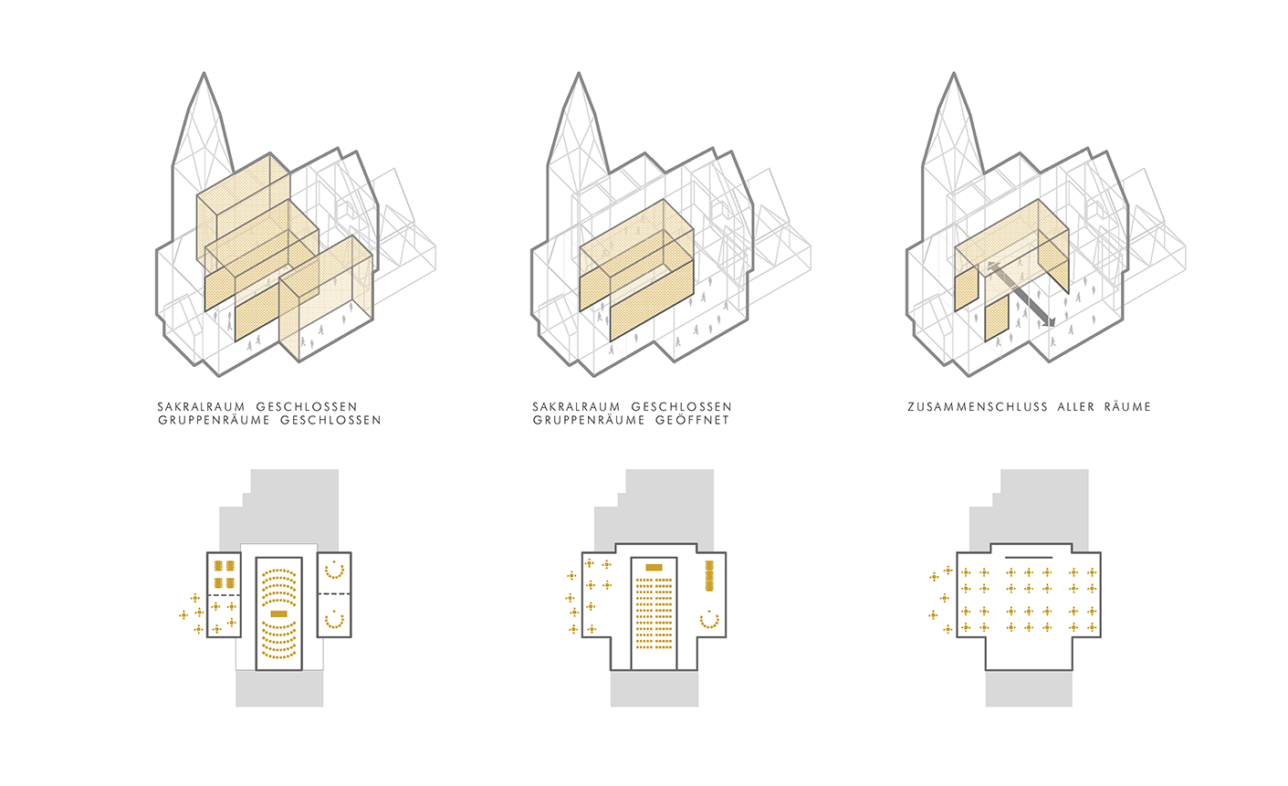 Das Preisgericht lobte den Entwurf des KZA-Teams vor allem für sein „ungestörtes Nebeneinander aller Aktivitäten in der Kirchengemeinde“. Zudem bietet der neue geschaffene Kirchenraum aus Sicht der Jury „viele Möglichkeiten für eine differenzierte Nutzung bei den Gottesdiensten und lässt bei einer zunehmend digitalen gesellschaftlichen Entwicklung beispielsweise auch Projektionen an den Wänden zu“. Damit sei er offen für neue Nutzungen, „ohne seine Würde zu verlieren“.