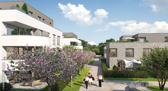Jung und Alt, Singles und Familien: Im Wohnquartier BelleRü sollen sie alle eine neue Heimat finden. Jetzt hat der Bau des Objekts im Herzen von Essen-Rüttenscheid begonnen. Das Architekturbüro Koschany + Zimmer Architekten KZA realisiert das Projekt für die Firmengruppe Interboden.