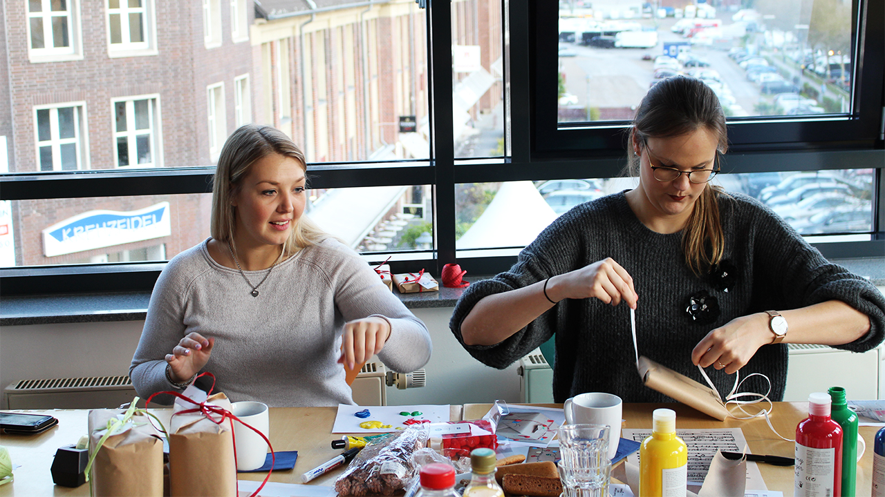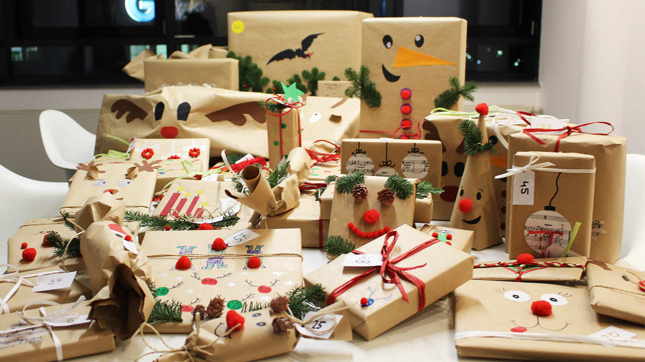 Um die Übergabe möglichst persönlich gestalten zu können, haben wir die Tagesgruppen zu uns ins Haus eingeladen. Besucht haben uns zwei Betreuer, zwei Kinder und eine Vertreterin der Stadt Essen für den Bereich Außenwohngruppen. Nach einer kurzen Büroführung haben wir stolz die eingepackten Geschenke präsentiert. Da waren Kakao und Kekse plötzlich Nebensache. Aber selbstverständlich wird erst an Heiligabend ausgepackt, sodass die Vorfreude bei den Kindern nun noch ein paar Tage wachsen kann.