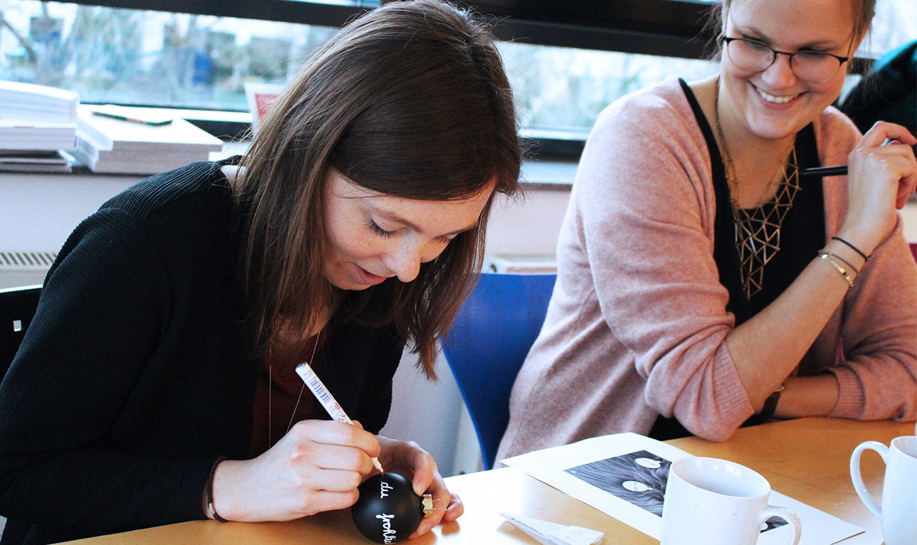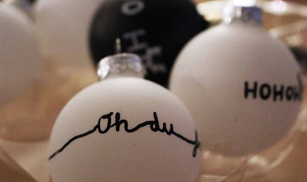 Konkret sah das so aus: Tannenzapfen bekamen einen Überzug aus Farbe und Glitzer. Aus Notenblättern und Schwarzplänen wurden edle Papiersterne. Und die einfarbigen Christbaumkugeln, die wir als Rohlinge bestellt hatten, verwandelten sich in coole Designobjekte. Perfekt, um direkt an den heimischen Baum zu wandern – oder den Lieben zu Hause eine Freude zu machen.
