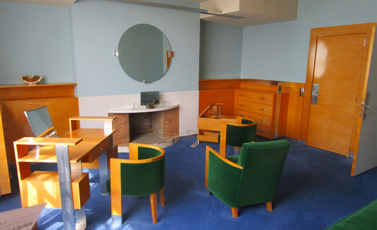 Auch die Innenräume, die mit Originalmöbeln beziehungsweise Originalnachbauten ausgestattet sind, begeistern den Besucher mit Ihrer Formgebung, die der jeweiligen Nutzung angepasst ist. Zimmer und Bäder sind groß, modern und hell, aber nicht protzig.