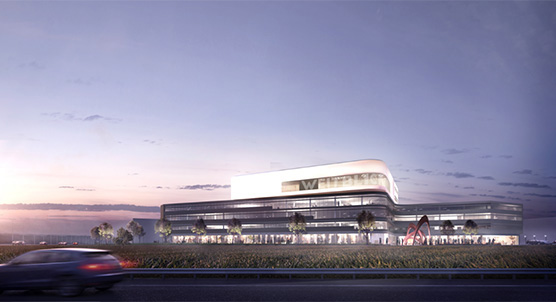 Der Grundgedanke war es, die umgebenden Strukturen mit ihren Qualitäten aufzunehmen, sie zu erweitern und zu stärken. „Die Architektur sollte sich aus jeder Perspektive – aus der Nähe des Quartiersplatzes wie aus dem weiten Blick der Bundesstraße – in immer neuer und prägnanter Form zeigen und dabei den Besucher, im Sinne des Innovationsparks, anregen, es zu erforschen.“