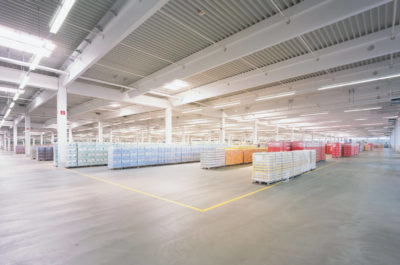 Anders als in Deutschland sind die Hallen als Stahlskelettkonstruktion gefertigt, mit Außenhüllen aus Betonfertigteilen und Stahlsandwich-Fassadenelementen. Der Wechsel aus Metallkassetten- und Pfosten-Riegel-Fassade wiederum bestimmt das Erscheinungsbild des Bürogebäudes. Für die Bodenplatte hat das KZA-Team beeindruckende 43.000 Quadratmeter fugenlosen Walzbeton verbaut und insgesamt 55.000 Quadratmeter Dachfolie aufgebracht. Seit Herbst 2013 beliefert das Logistikzentrum alle südlichen Aldi-Märkte in Irland.