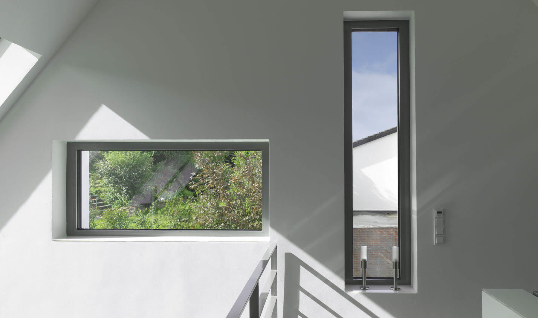 Man kann es Glück nennen: Städtische Bebauungsvorgaben zwangen das KZA-Team zu einer Verdopplung und gleichzeitiger Verschränkung zweier Neubauten, die die Kubatur eines Vorgänger-Sattelbaus aufnahmen. Ergänzt um einen eingeschossigen Vorbau war das Konzept der „Hausgruppe“ geboren.
