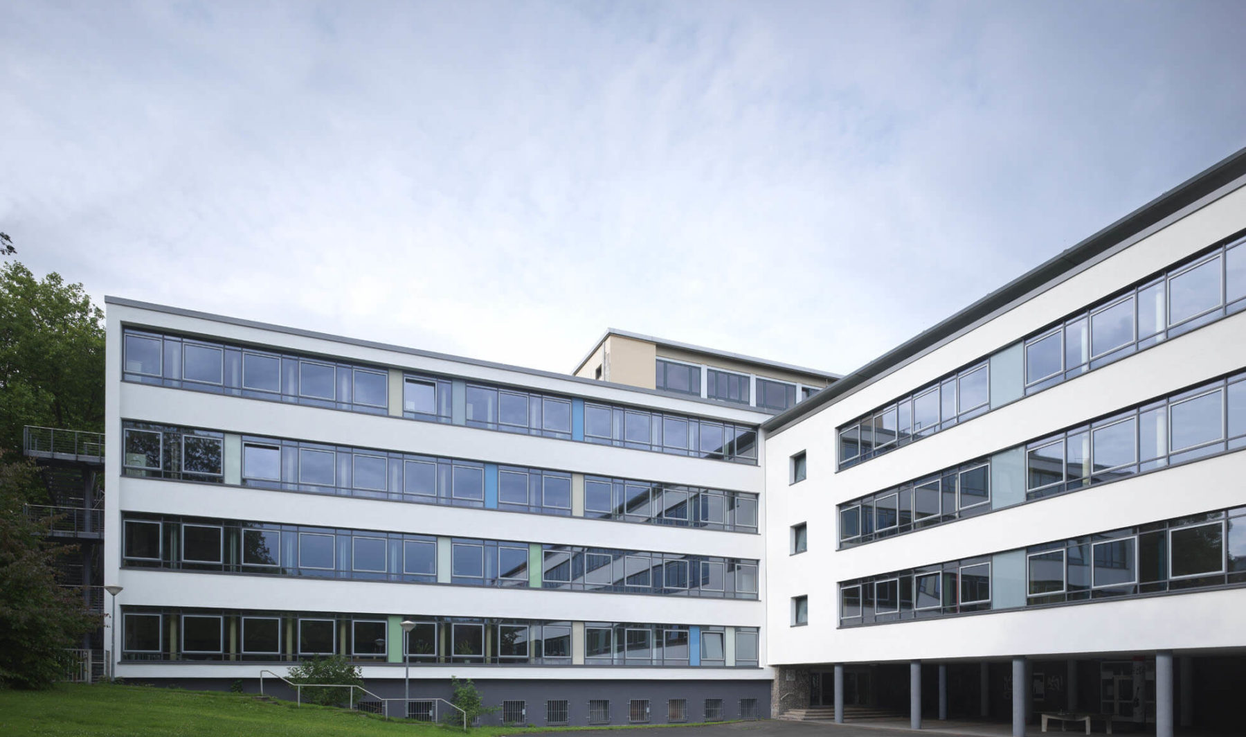 Gemäß der Energieeinsparverordnung EnEV 2009 sanierte KZA von 2009 bis 2011 das Helmholtz-Gymnasium in Essen-Rüttenscheid energetisch. Rund 37 Prozent betrug die erzielte Energieeinsparung. Die Maßnahmen beeinhalteten den Einbau neuer hochwärmegedämmter Fenster mit Dreifachverglasung und Sonnenschutz. Eine Optimierung des Wärmeschutzes erreichten die Architekten zudem durch ein neues Wärmedämmverbundsystem inklusive Klinkerflächen.