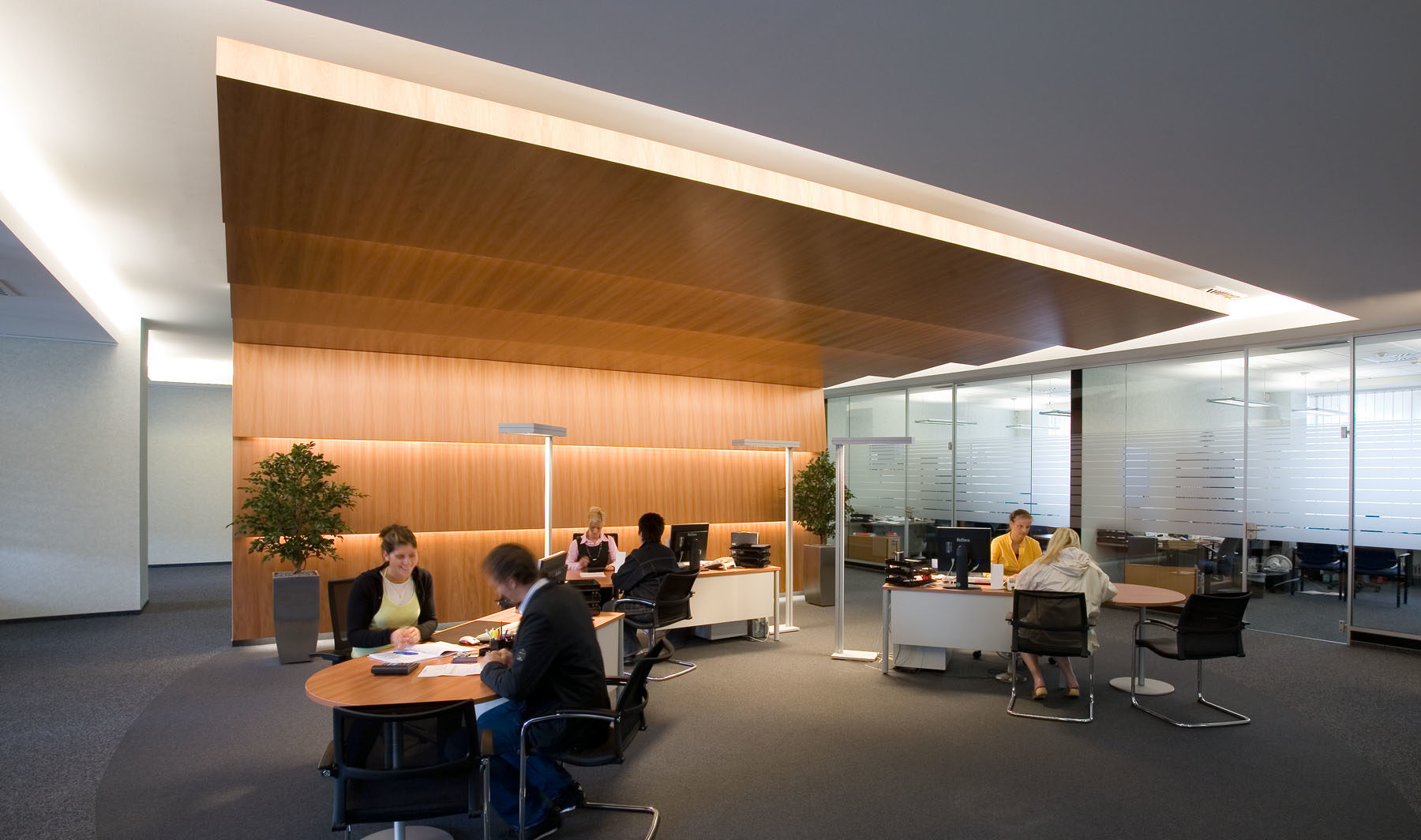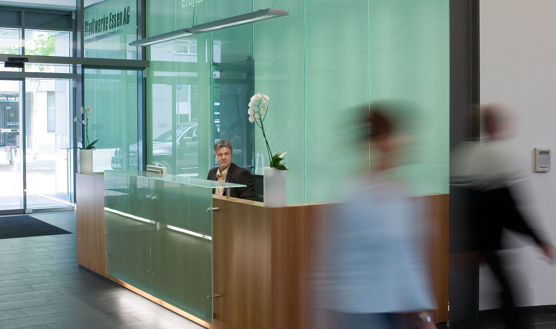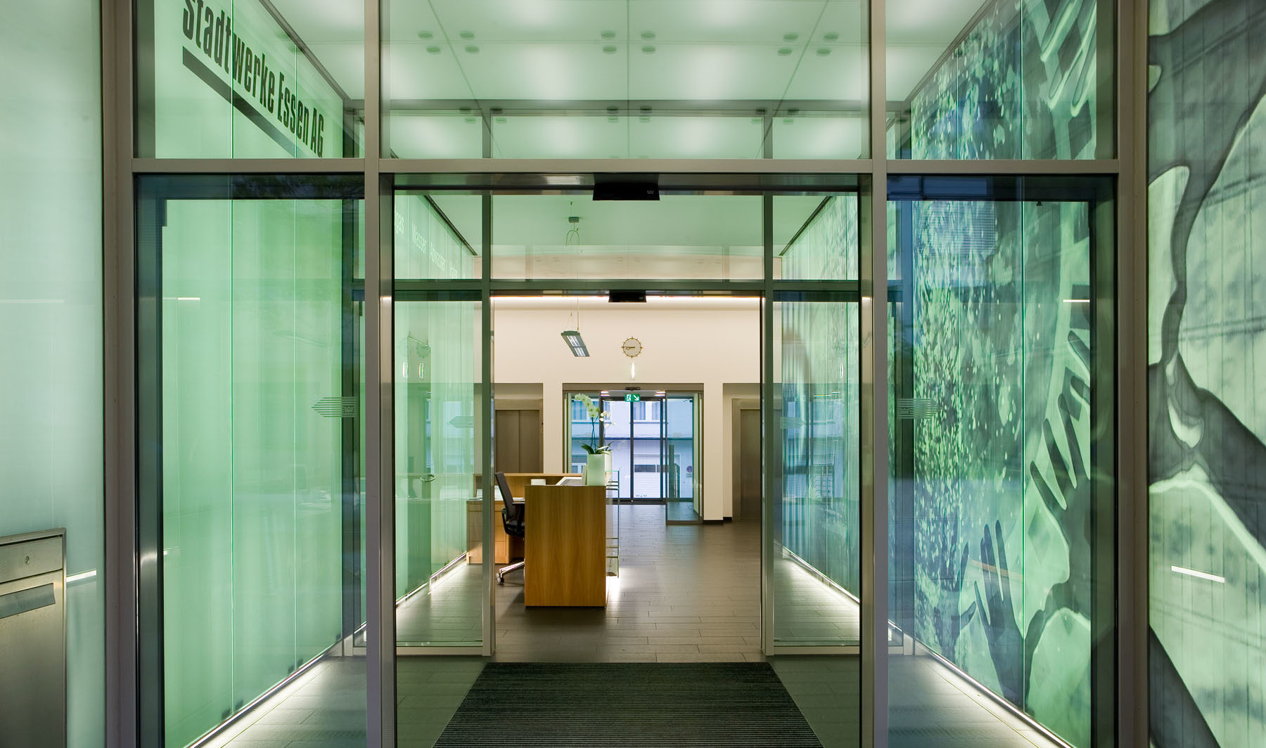 Neben einer Empfangshalle und einem Kundeninformationszentrum im Erdgeschoss gestaltete KZA 2006 auch die Lobby, die Flur- und Konferenzbereiche des Vorstandsgeschosses sowie zwei Vordächer der Stadtwerke Essen AG neu.