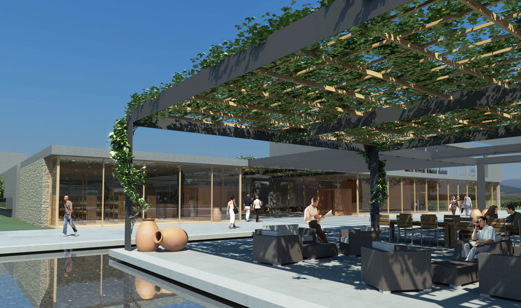 Auf 38 Hektar Land plante das Team von KZA die neue Anlage des Weingutes Chateau Kvareli: mit Villa, Hotelresort und angegliederten Sport- und Wellnesseinrichtungen sowie nicht zuletzt einem Weingut. Der Entwurf ist Ausdruck und neues Lebensgefühl einer sehr alten Tradition der Weinherstellung in Georgien.